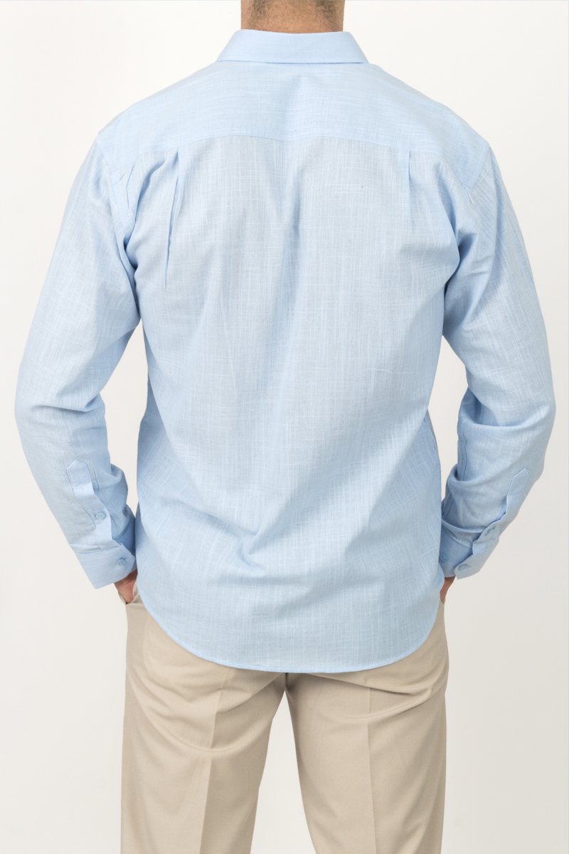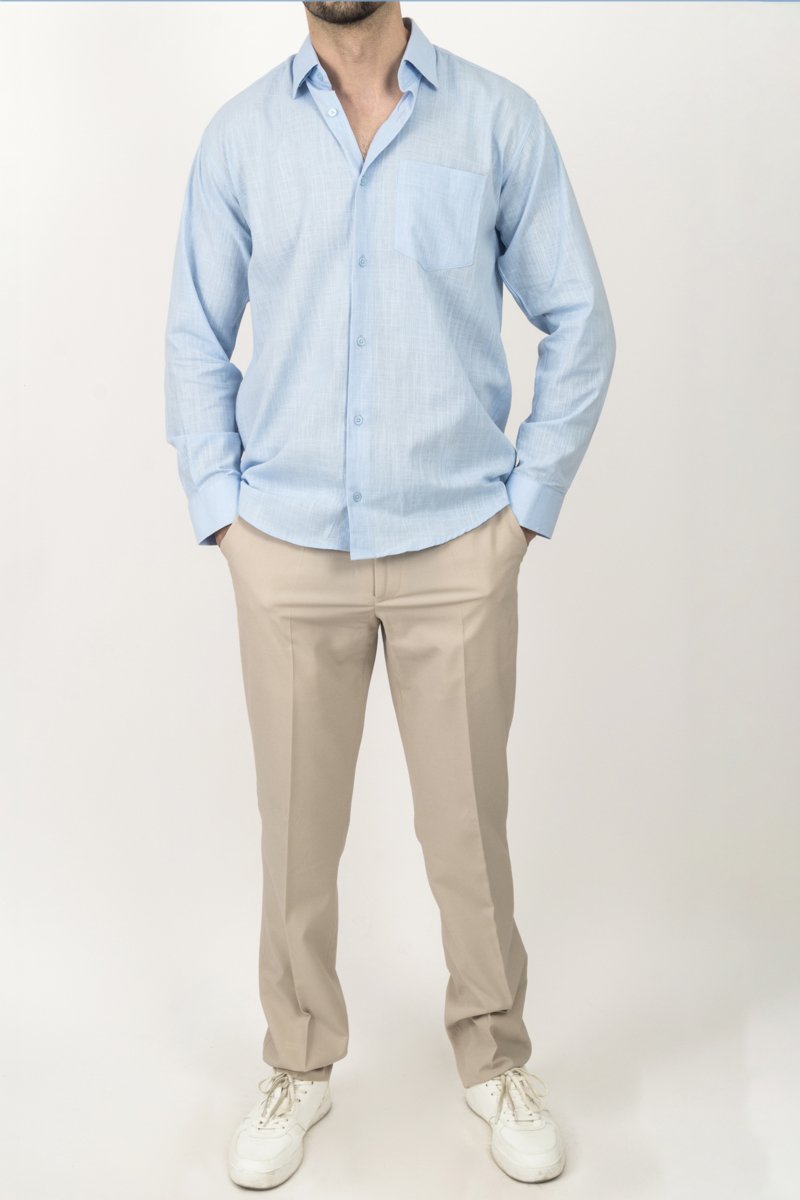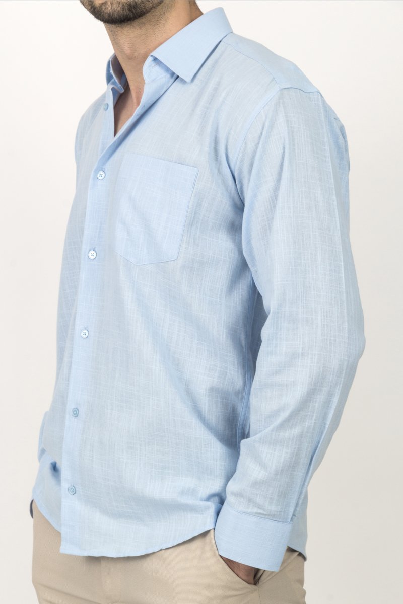 Buz Mavi Klasik Kesim %100 Pamuk Keten Gömlek