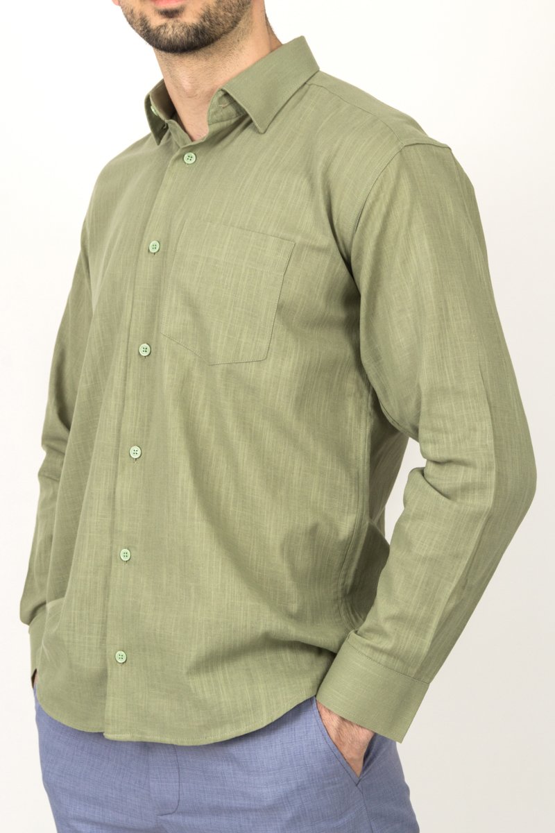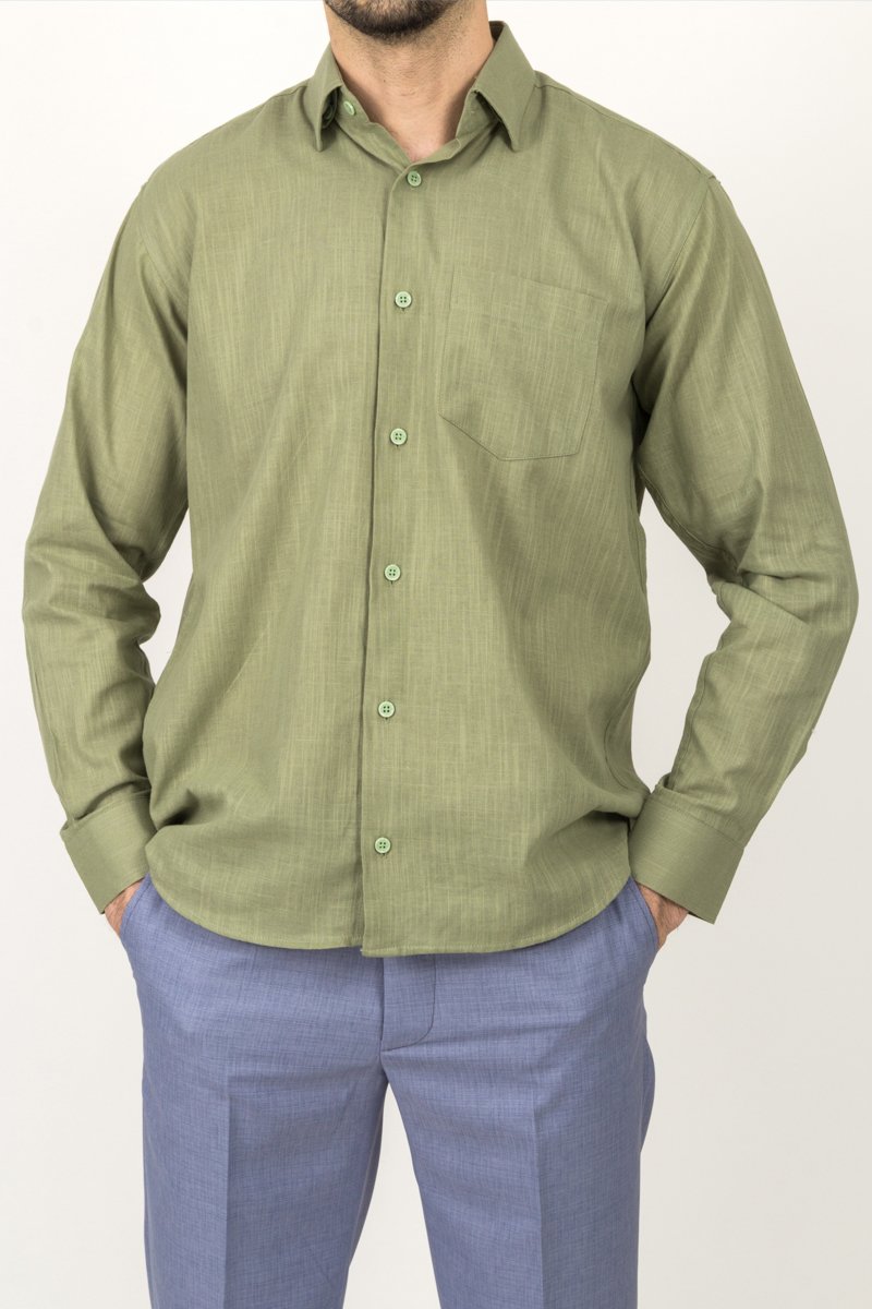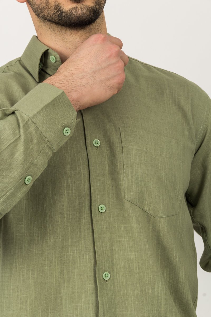 Rahat formu ve nefes alan %100 pamuk keten dokusuyla yazın favorisi olmaya aday klasik kesim mavi gömlek, günlük ve şık kombinlerde yüksek konfor sunar.